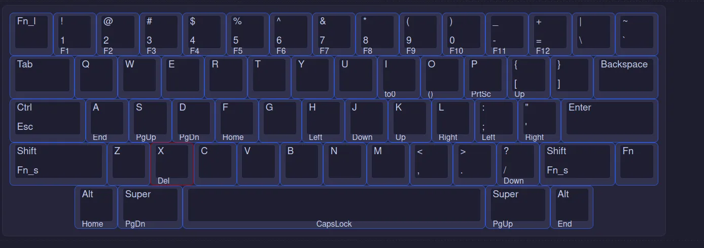 本来提前熟悉过qmk的固件, 不过因为板子是双模的, 所以要用zmk. 改键体验说实话不如qmk, zmk社区喜欢线上写action来编译固件, 所以线下的构建工具也很麻烦, 要布置一个py虚拟环境, GitHub线上编译也就慢点, 就懒得折腾. 不过第一次改zmk的设备树式的键位文件时翻车了, 莫名其妙有一些不可见字符混入, 只能推导重来, 没有lsp语法检查, 构建action用的cmake输出也是一坨, 好麻烦.